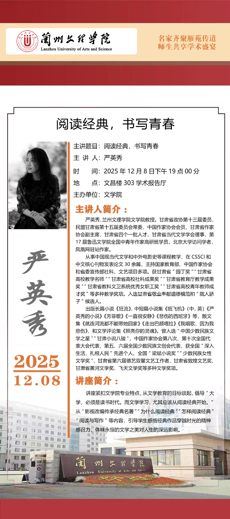 《阅读经典,书写青春》讲座